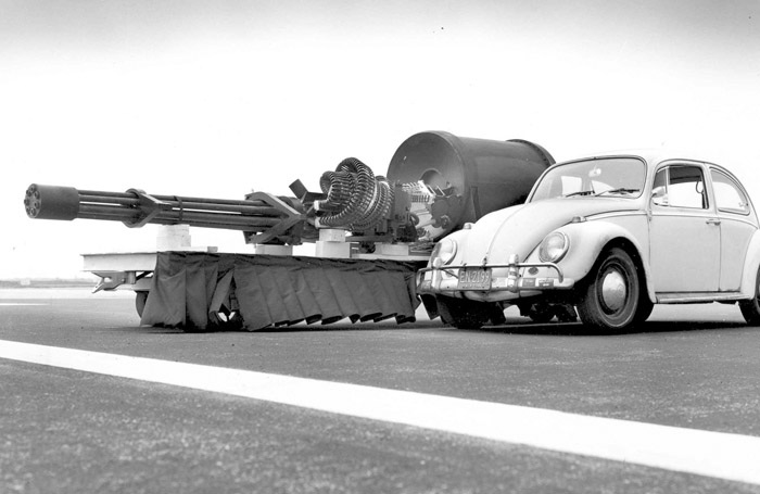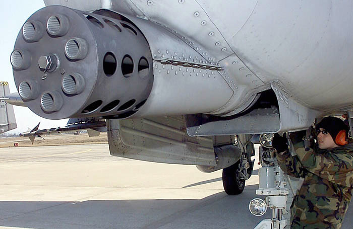 The A-10 was designed for close air support (CAS) for soft and armored targets. The A-10 was designed around the 30 mm GAU-8 Avenger rotary autocannon. The GAU-8 is a seven barrel Gatling type weapon with a rate of fire of 3,900 round per minute.